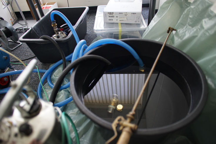 Hier verwendete ich eine starke steuerbare Pumpe, da ich wusste: Ab einer gewissen Regenmenge reicht der normale Wasserhahn nicht mehr aus. Ein Runner sorgte dafür, dass meine Wasserbehälter immer voll waren – wenn einer leer zu werden drohte, musste er rasch den Ansaugschlauch in den nächsten wechseln.