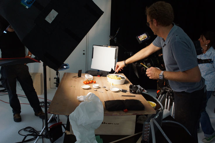 Die Rauchpumpe ist für nicht übertrieben viel Rauch, der aber ein- und ausgeschaltet werden kann.. Z.B. für Food, weil das Schnitzel nicht mehr dampft, wenn der Foodstylist es endlich wirklich so appetitlich hergerichtet hat, wie es sein muss. Ich entwicklete sogar eine Heizung für den Rauch, damit er am Ende immer noch ein bisschen aufsteigen mag..