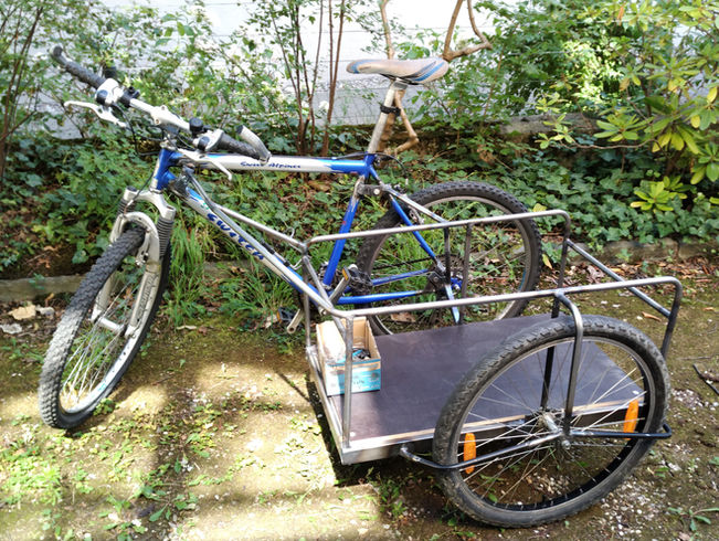 Also beschloss ich, das vierte Seitenwagenvelo meines Lebens zu bauen. Das erste hatte ich ungefähr 1986 gebaut und dabei gemerkt, dass so ein Ding ein äusserst praktisches Transportvehikel ist. Damals konnte ich noch bei weitem nicht Autofahren und benutzte es sehr oft für Transportfahrten – um z.B. Sechsmeter-Stahlstangen beim Stahllieferanten abzuholen oder mit Freundinnen als Ladung ins Kino zu fahren. Oder um bei Neuschnee in der Stadt herumzubrettern, da ich ja nicht ausgleiten und umfallen konnte..
